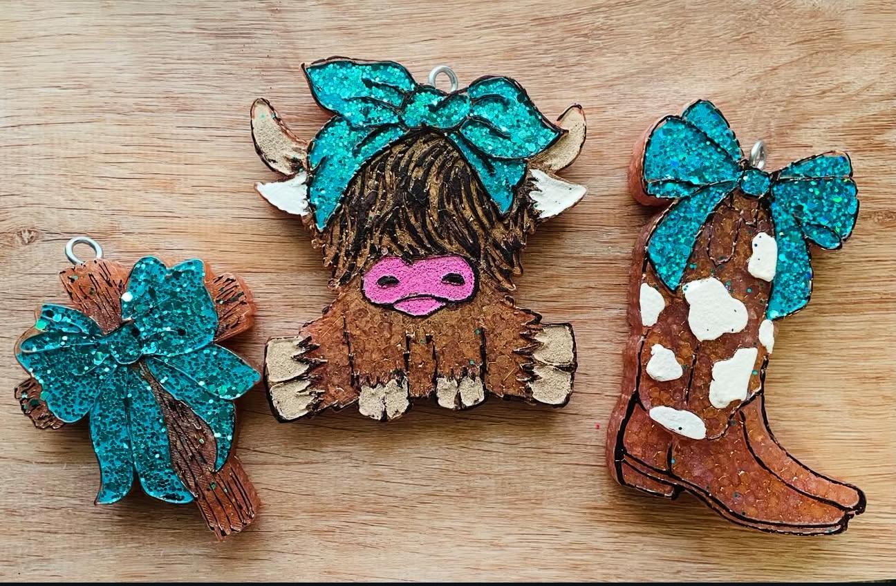 Grab one of the adorable Highland Cows, western boot or the southern cross for your car. You can't go wrong with one of these turquoise cuties.